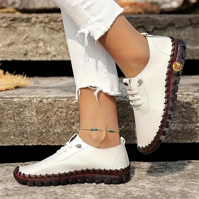 Кроссовки, женская обувь, лоферы на платформе, кожаные слипоны на шнуровке на плоской подошве, новая весенняя повседневная обувь для мам, Mujer Zapatos Chaussure Femme