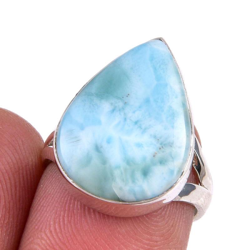Подарочное кольцо из натурального стерлингового серебра 925 пробы с драгоценным камнем Ларимар S.6 q0o74