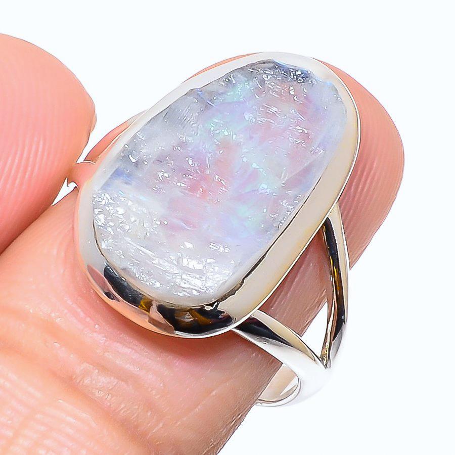 Натуральный радужный лунный камень, кольцо из стерлингового серебра 925 пробы, размер 8,5 f9U81 — купить товар онлайн с бесплатной доставкой по всему миру!