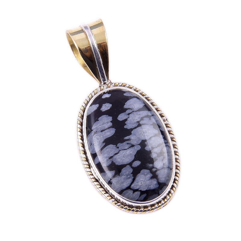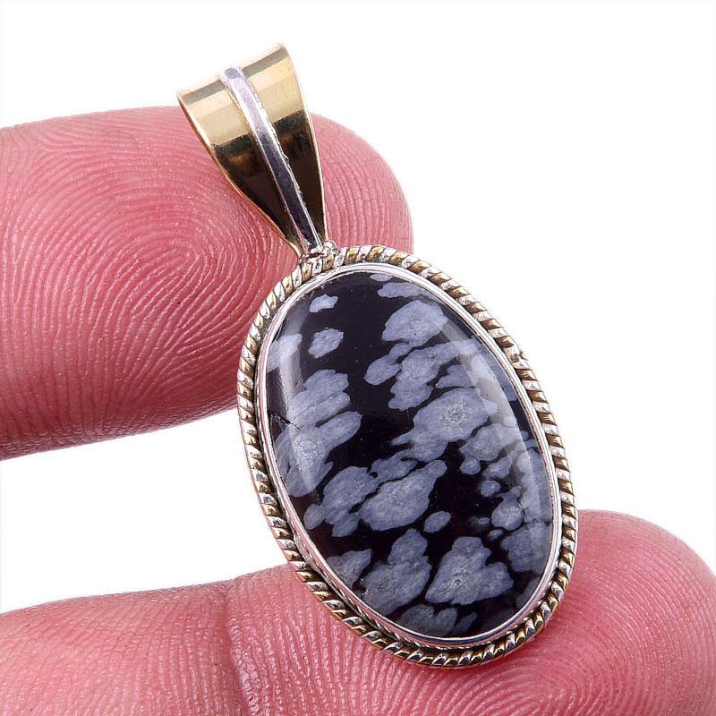 Натуральный снежинка-обсидиан, твердый серебряный 925-й пробы, двухцветный кулон, 1,50 дюйма, n3w27