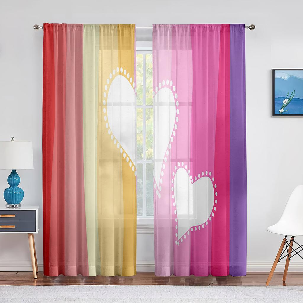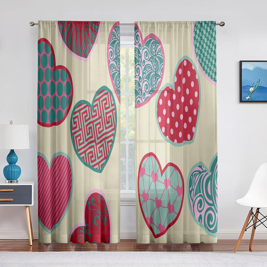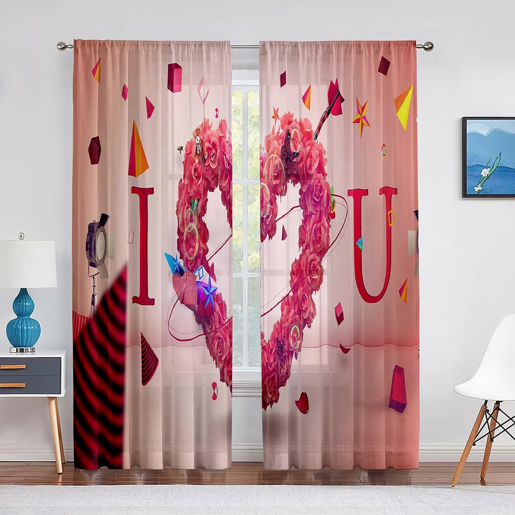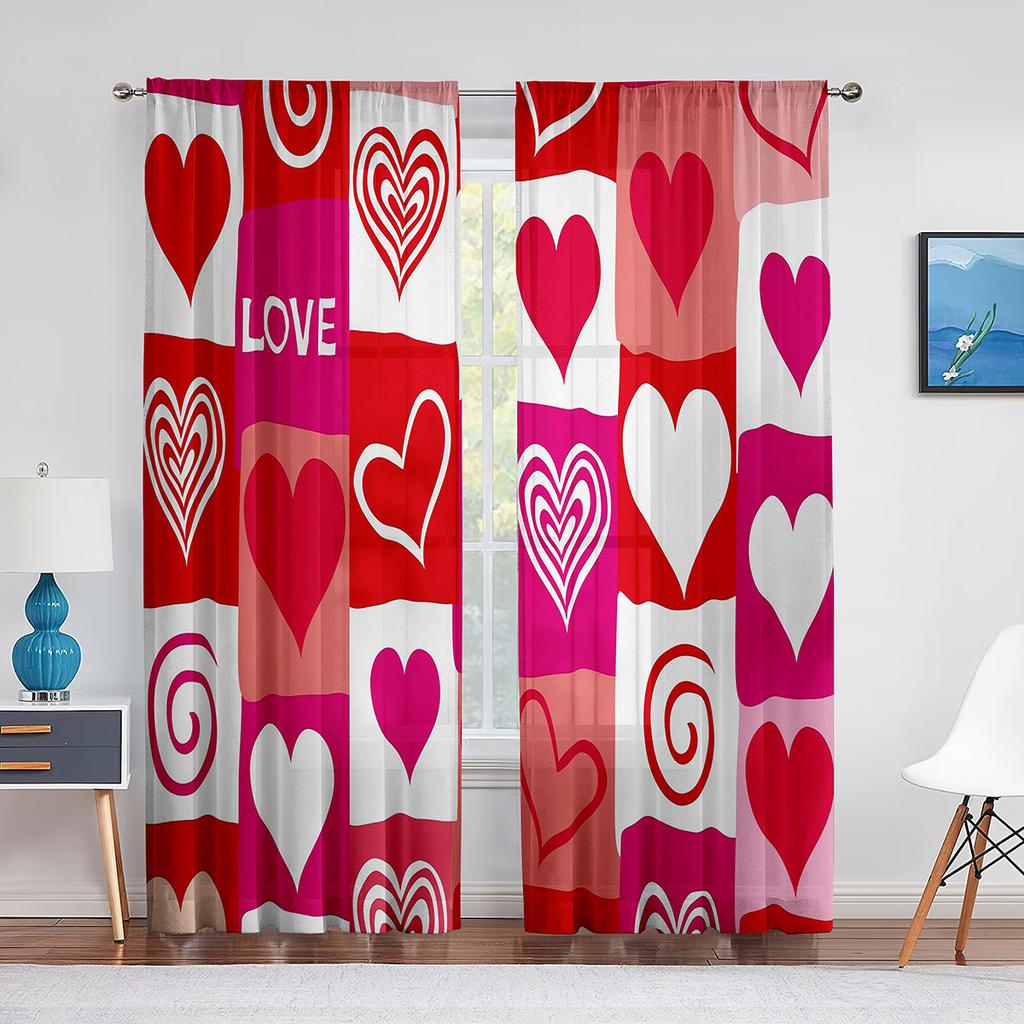 Ярко-розовые прозрачные шторы в форме сердечек на День Святого Валентина, гостиная, спальня, кухня, украшение, оконная Тюлевая занавеска из вуали