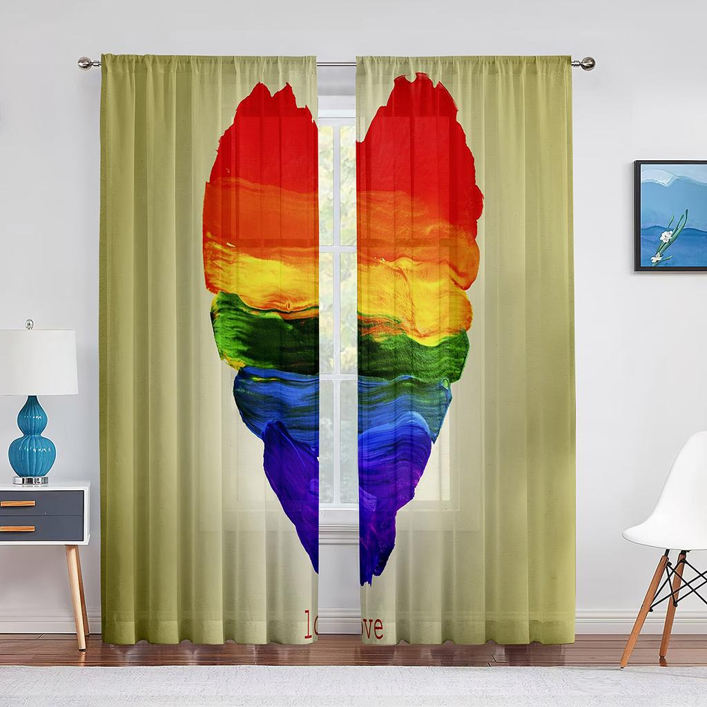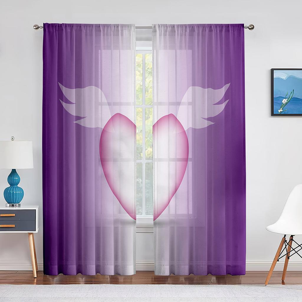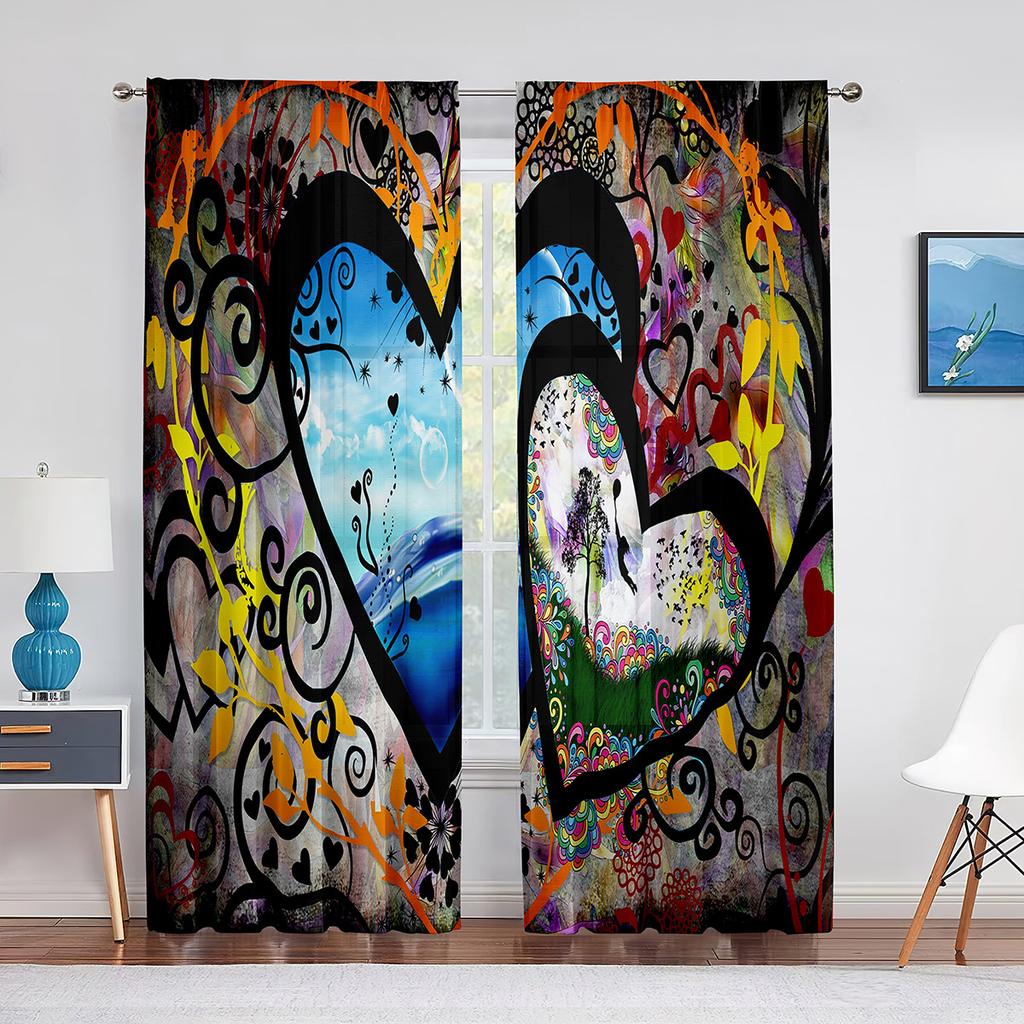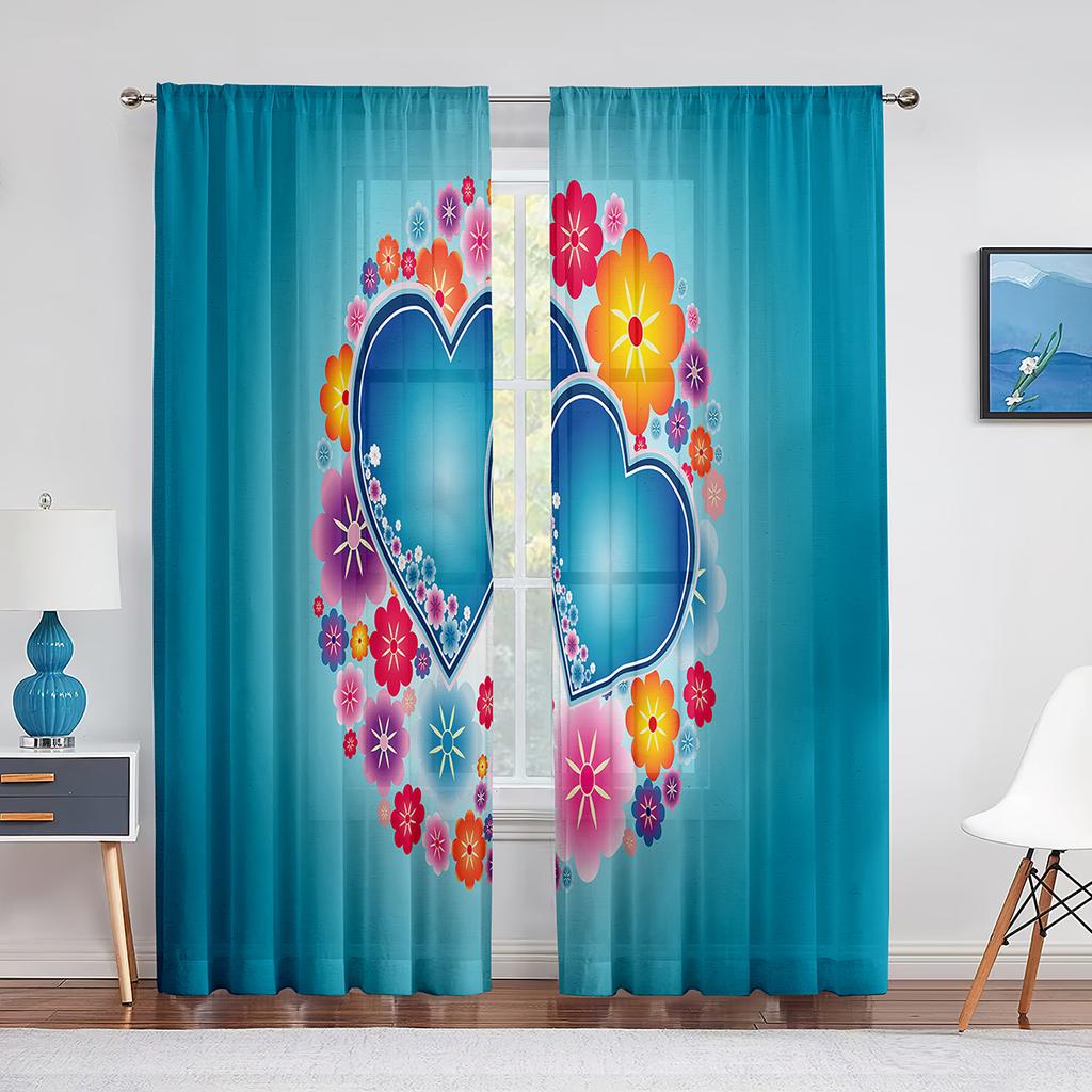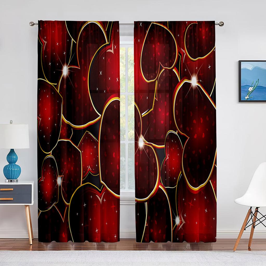 Ярко-розовые прозрачные шторы в форме сердечек на День Святого Валентина, гостиная, спальня, кухня, украшение, оконная Тюлевая занавеска из вуали