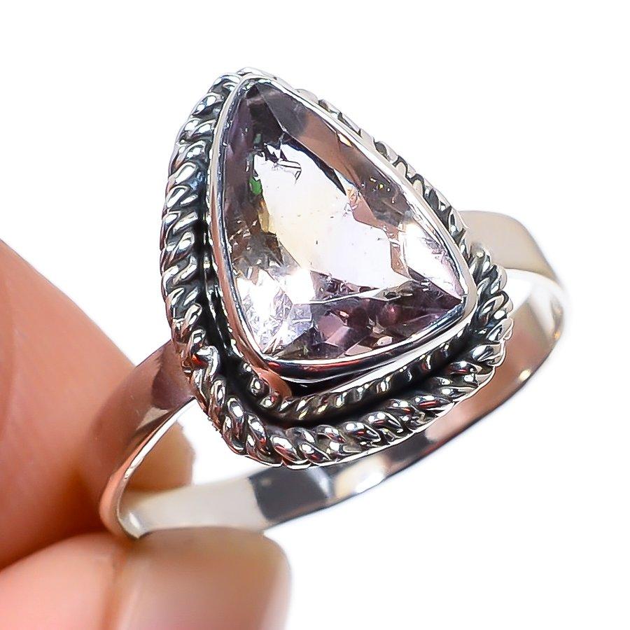 Подарочное кольцо ручной работы из стерлингового серебра 925 пробы с натуральным розовым аметистом S.8 H7d50