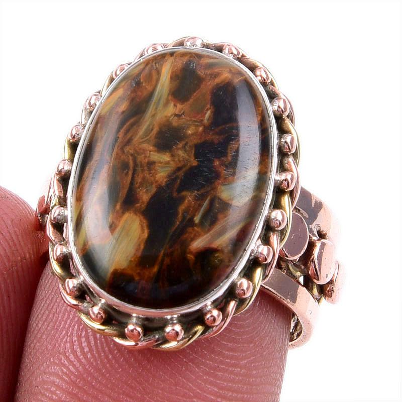 Натуральный драгоценный камень Питерсит, твердое серебро 925 пробы, ювелирные изделия, двухцветное кольцо, размер 7US e4b81