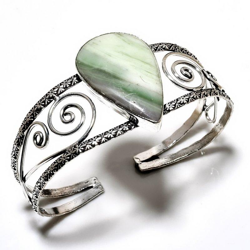 Швейцарский зеленый опал, драгоценный камень 925 пробы, посеребренный ювелирный браслет ручной работы, браслет-манжета