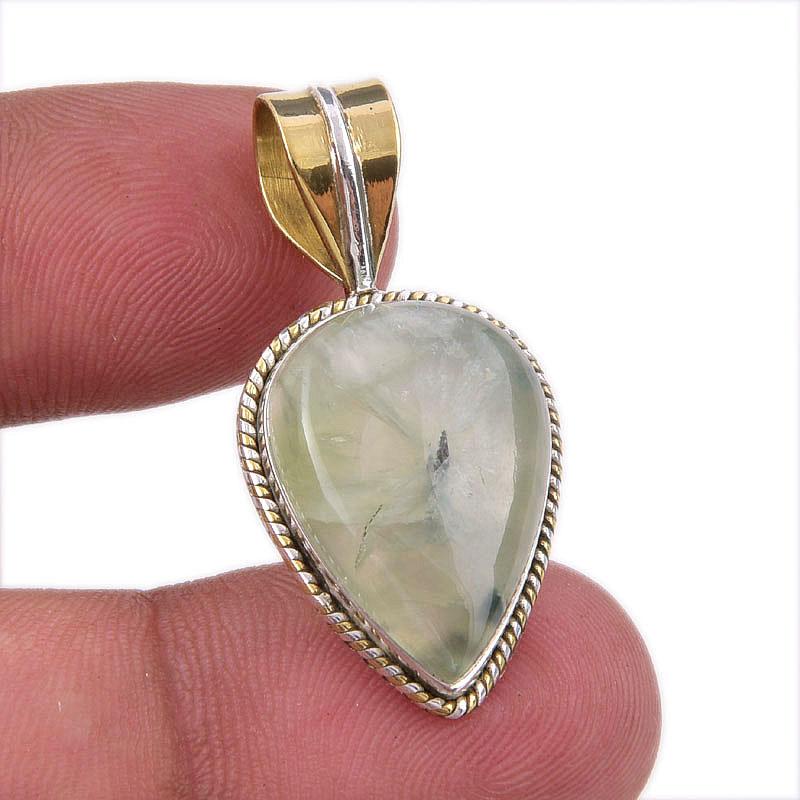 Natural Prehnite Gemstone 925 Solid Sterling Silver Two Tone Pendant 1.25 U6N16 — купить товар онлайн с бесплатной доставкой по всему миру!