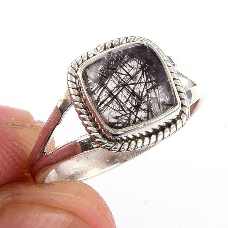 Кольцо из чистого серебра 925 пробы с натуральным черным рутилом ручной работы S.6 r4C48 — купить товар онлайн с бесплатной доставкой по всему миру!