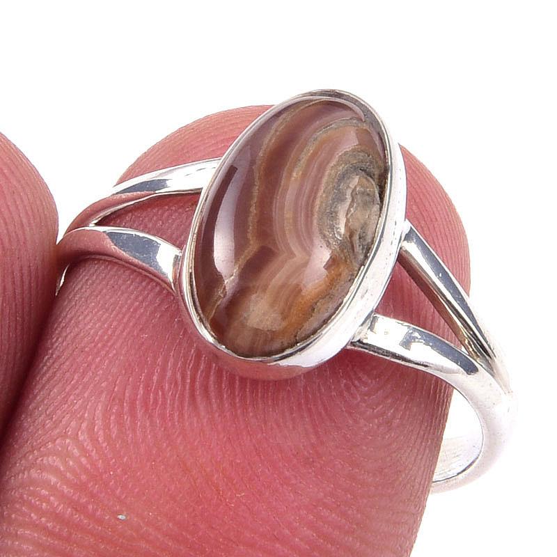 Кольцо из твердого серебра 925 пробы с натуральным медовым родохрозитом ручной работы, размер 8 S1y21