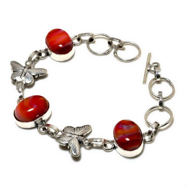Оранжевый кружевной агат, драгоценный камень 925, посеребренный браслет ручной работы, длина 6–8 дюймов