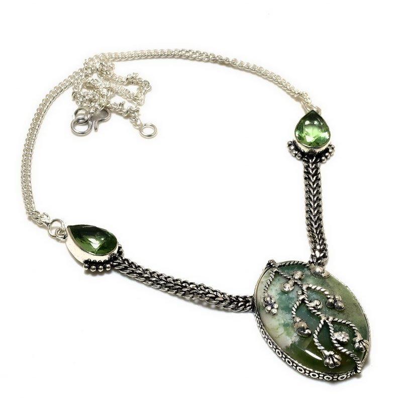 Индийский моховой агат-цаворит, драгоценный камень 925, посеребренное ювелирное ожерелье, 18 дюймов