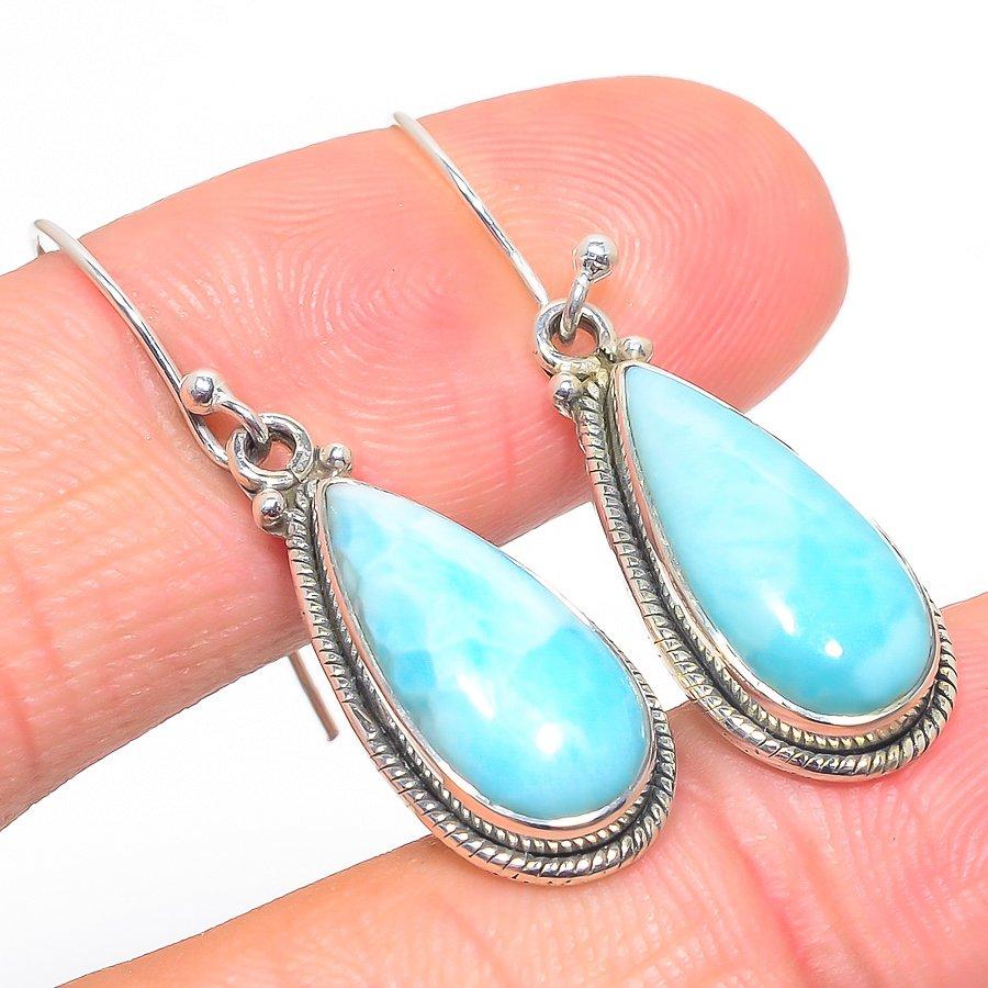 Серьги ручной работы из чистого серебра 925 пробы Natural Republic с драгоценным камнем Ларимар 1,50 дюйма V4I03
