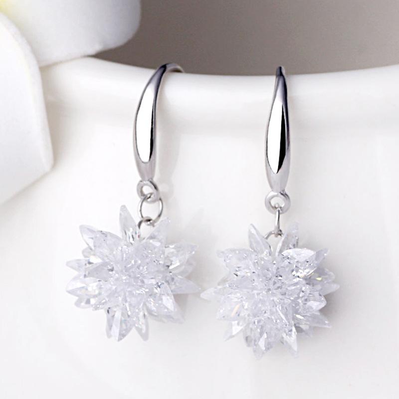 Женские винтажные корейские модные элегантные антиаллергенные посеребренные серьги 925 пробы с простым кристаллом, ледяным цветком, висячие серьги, женские украшения для ушей, рождественские подарки