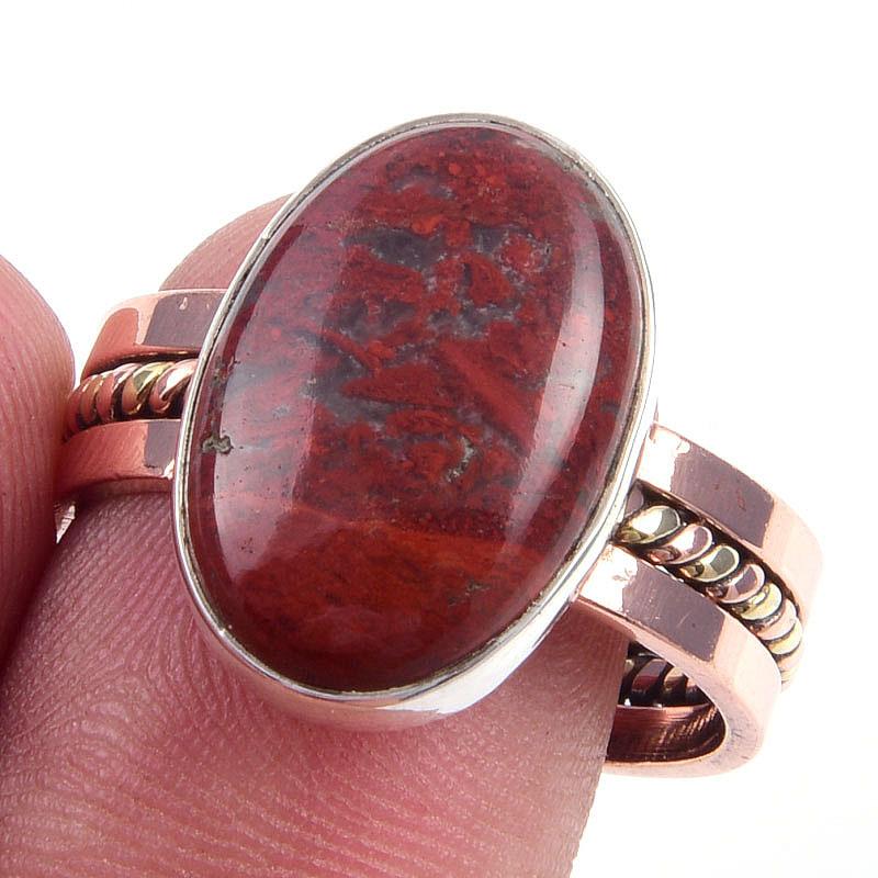 Кольцо из натурального красного драгоценного камня яшмы 925 пробы с двумя тонами S.9.5 S4R48