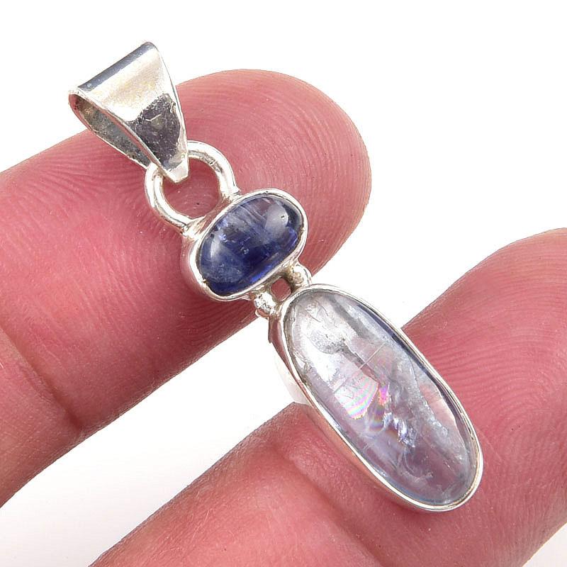 Подвеска из натурального кианита из стерлингового серебра 925 пробы 1,40 дюйма J1L10
