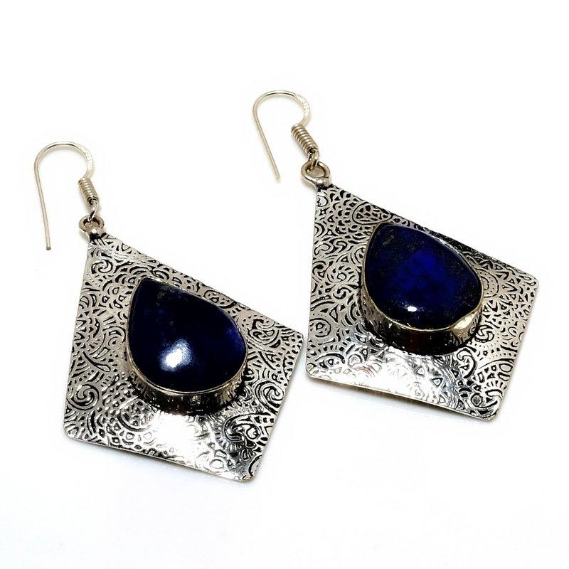 Ювелирные серьги ручной работы с драгоценным камнем лазурит 925 пробы, посеребренные, 2,46 дюйма — купить товар онлайн с бесплатной доставкой по всему миру!