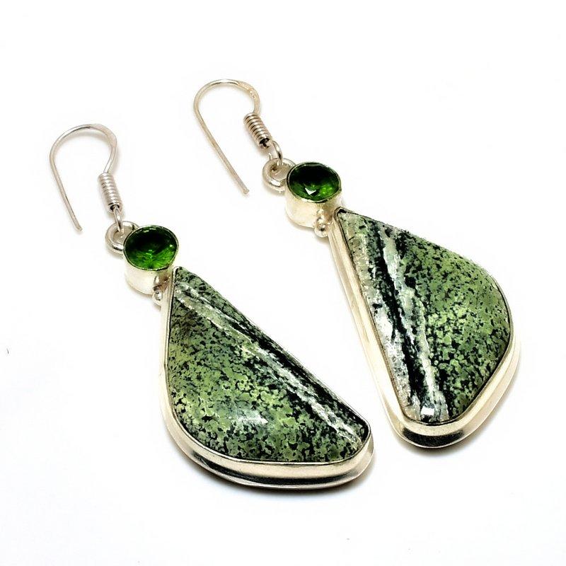 Серьги с полосатым зеленым опалом Цаворитом, посеребренные 925 пробы, 2,27 дюйма — купить товар онлайн с бесплатной доставкой до всему миру!
