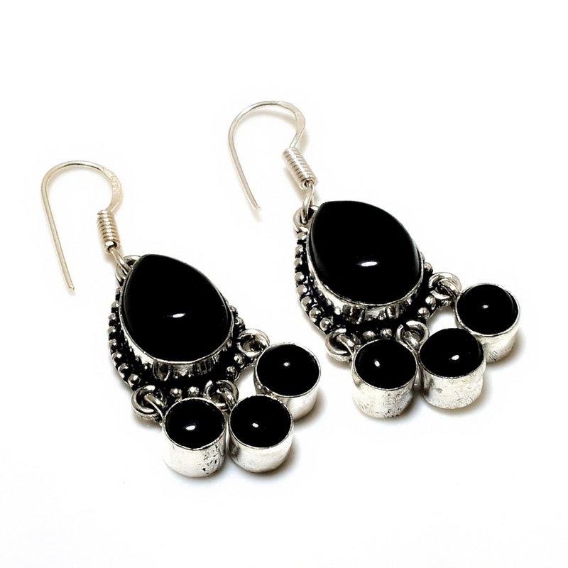 Ювелирные серьги ручной работы с черным ониксом 925 пробы, посеребренные, 1,70 дюйма