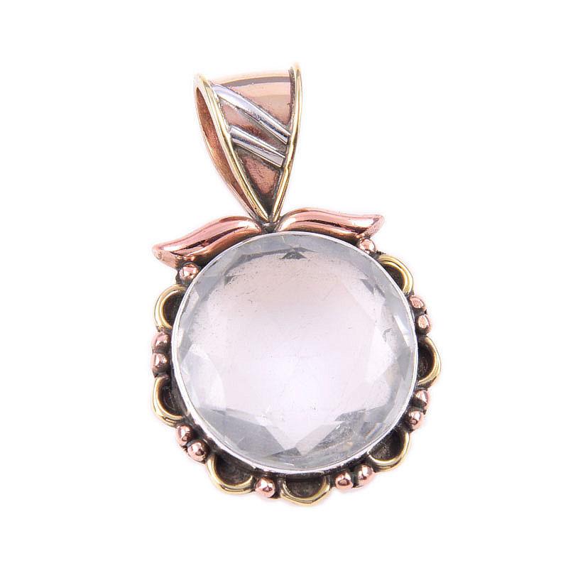 Подвеска из натурального кристалла кварца 925 пробы из цельного серебра в двух тонах 1,25'' O8c85