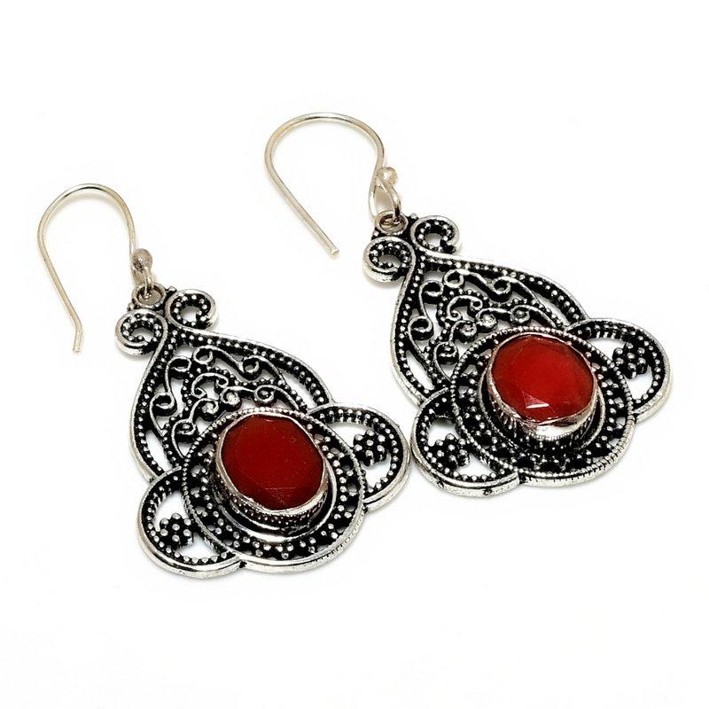 Ювелирные серьги ручной работы с итальянским красным кораллом 925 пробы, посеребренные, 1,89 дюйма