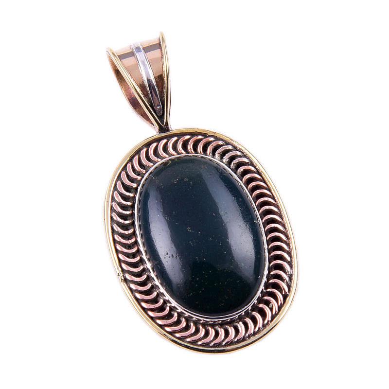 Натуральный камень Гелиотроп 925 Проба Стерлинговое серебро Двухцветная подвеска 1,50" F4O08