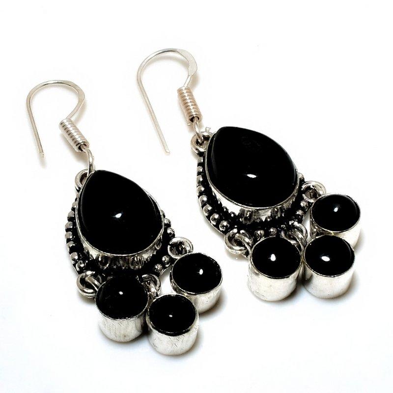 Ювелирные серьги ручной работы с черным ониксом 925 пробы, посеребренные, 1,89 дюйма