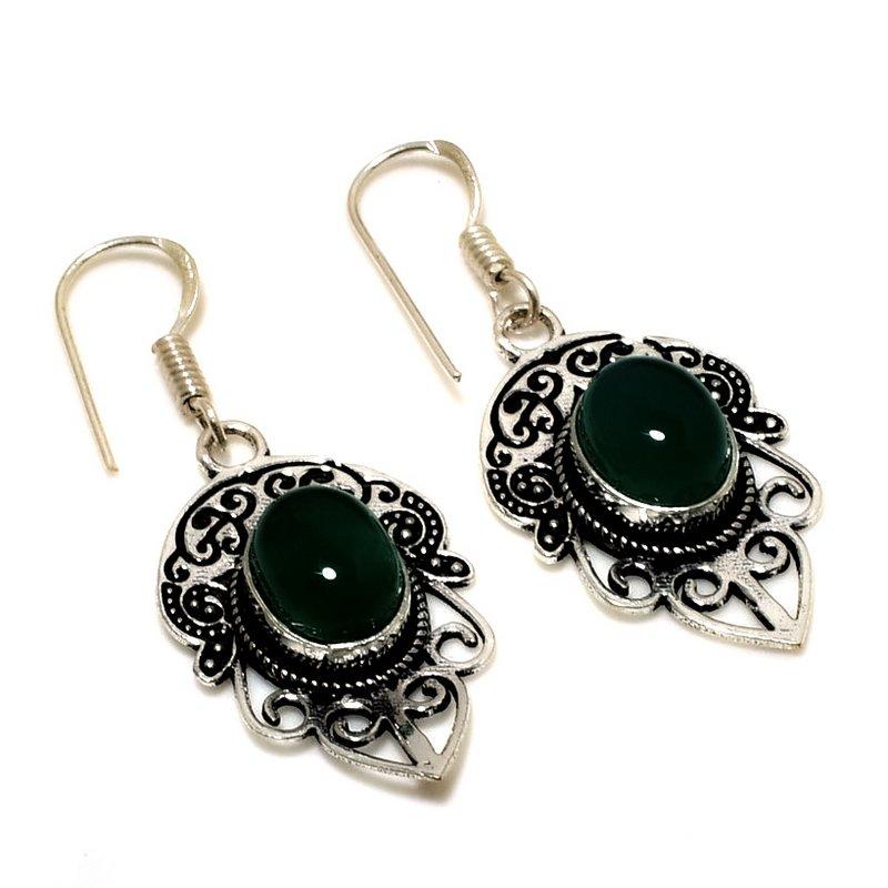 Ювелирные серьги ручной работы с зеленым ониксом 925 пробы, посеребренные, 1,70 дюйма — купить товар онлайн с бесплатной доставкой по всему миру!