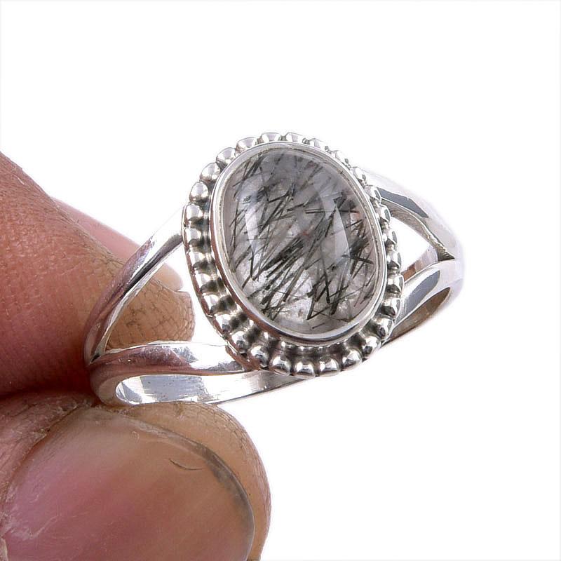 Кольцо из стерлингового серебра 925 пробы с натуральным черным рутиловым драгоценным камнем S.6.5 G2w23 — купить товар онлайн с бесплатной доставкой по всему миру!