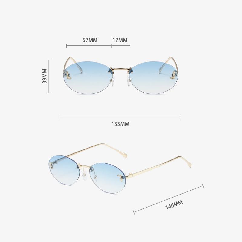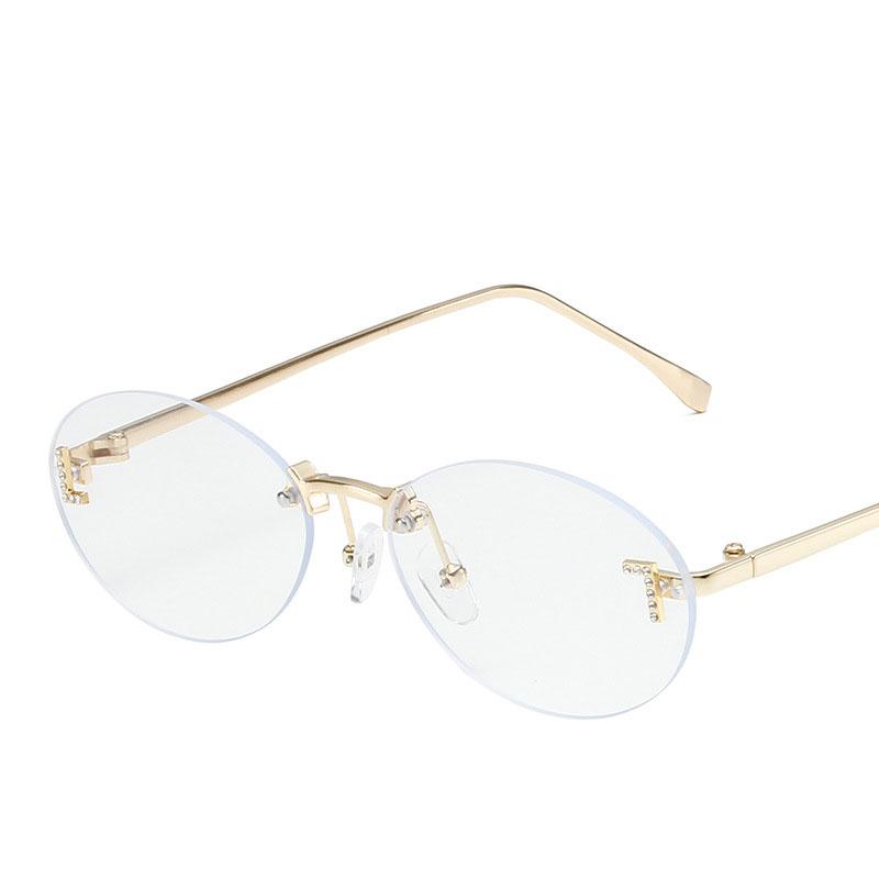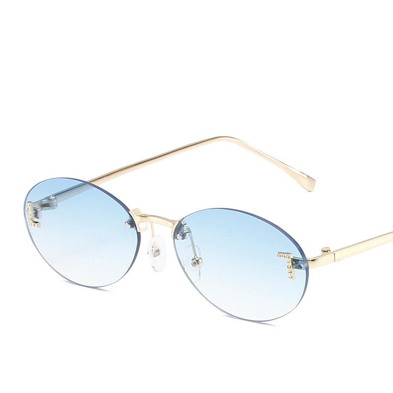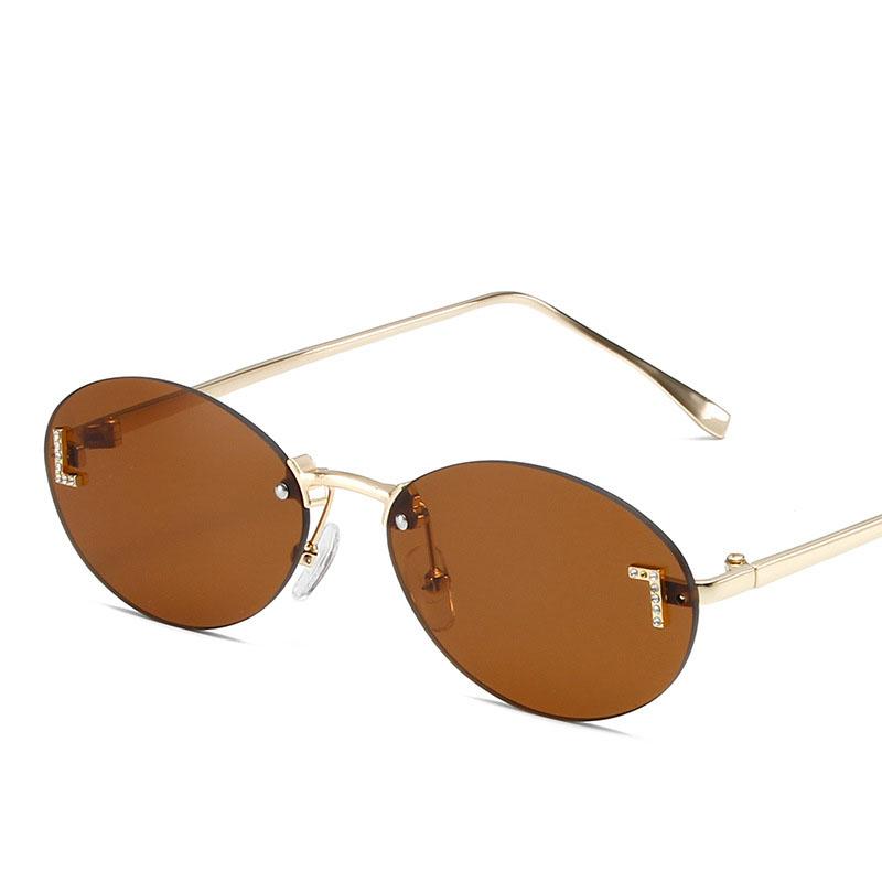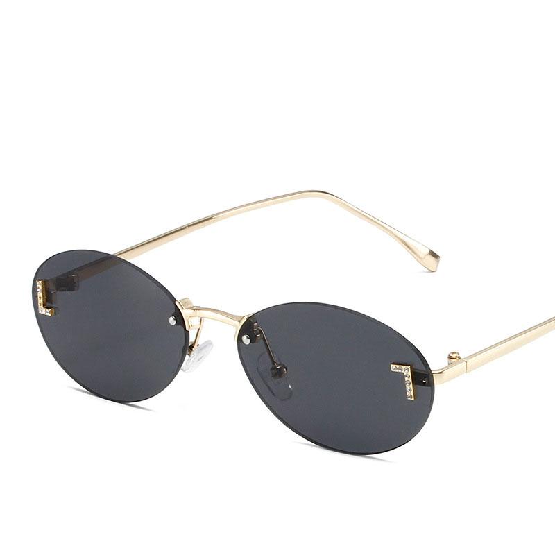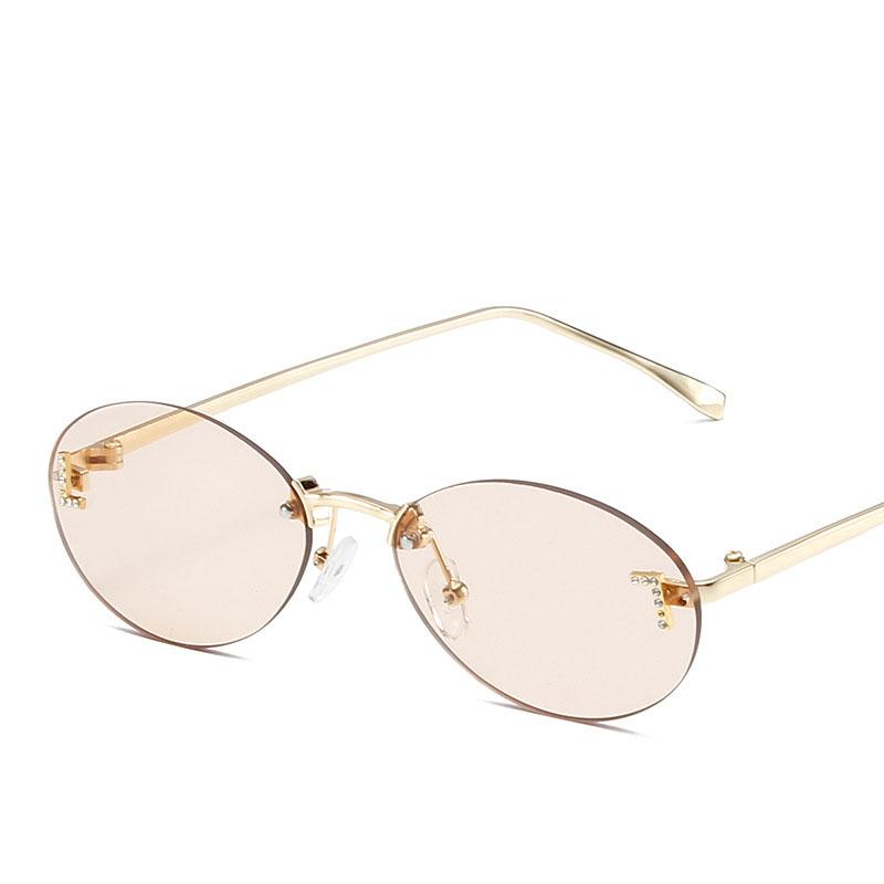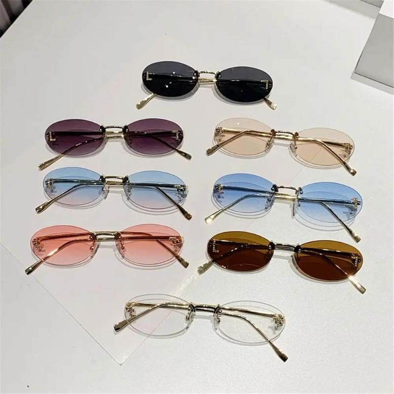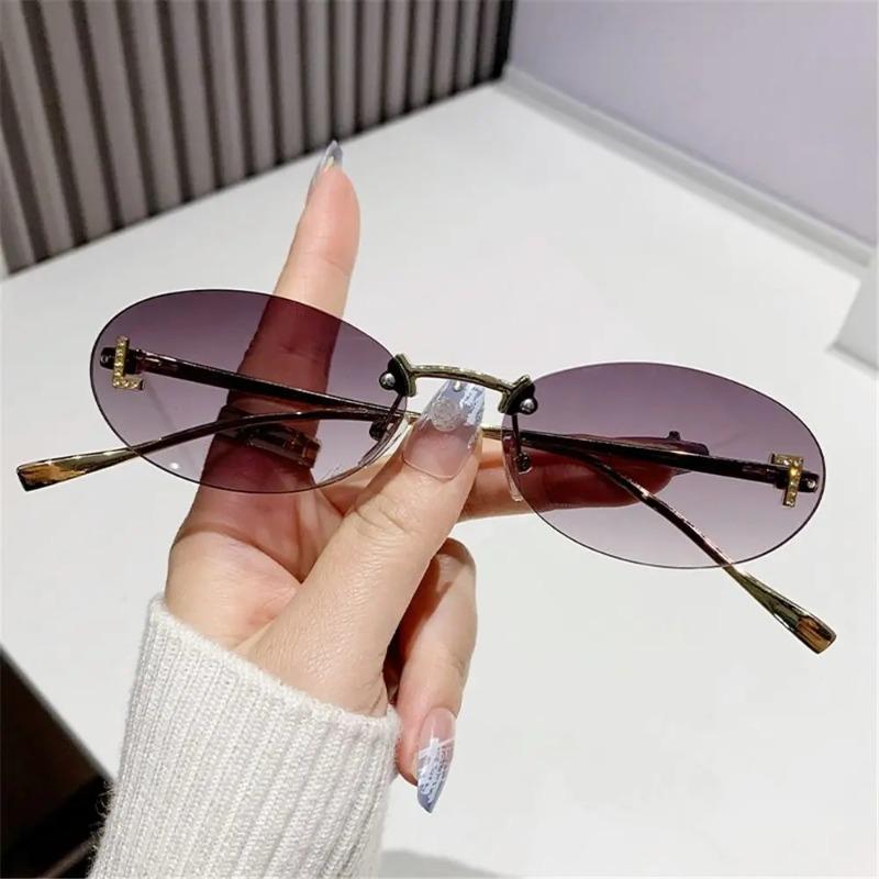 Модные овальные солнцезащитные очки для женщин, солнцезащитные очки с буквенным декором, модные солнцезащитные очки без оправы, очки «кошачий глаз», защита UV400, металл