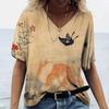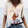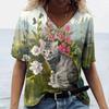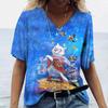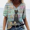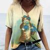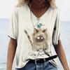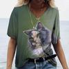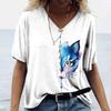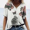 Женская футболка с 3D принтом «Манга Кот» в стиле Харадзюку, летний топ с короткими рукавами и v-образным вырезом, повседневная женская одежда, футболки большого размера