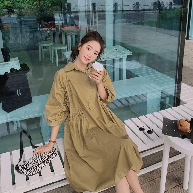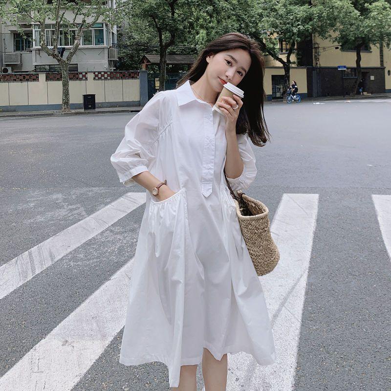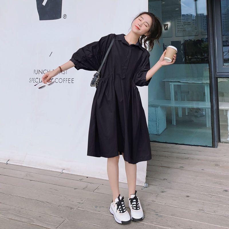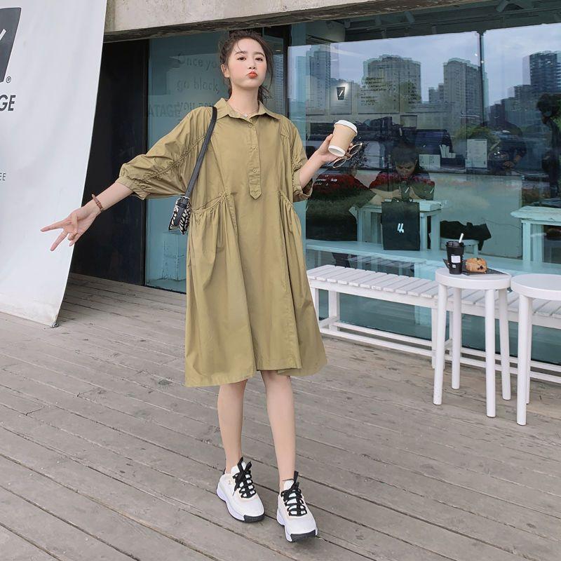 Свободное платье-рубашка больших размеров, однотонное платье с короткими рукавами для женщин