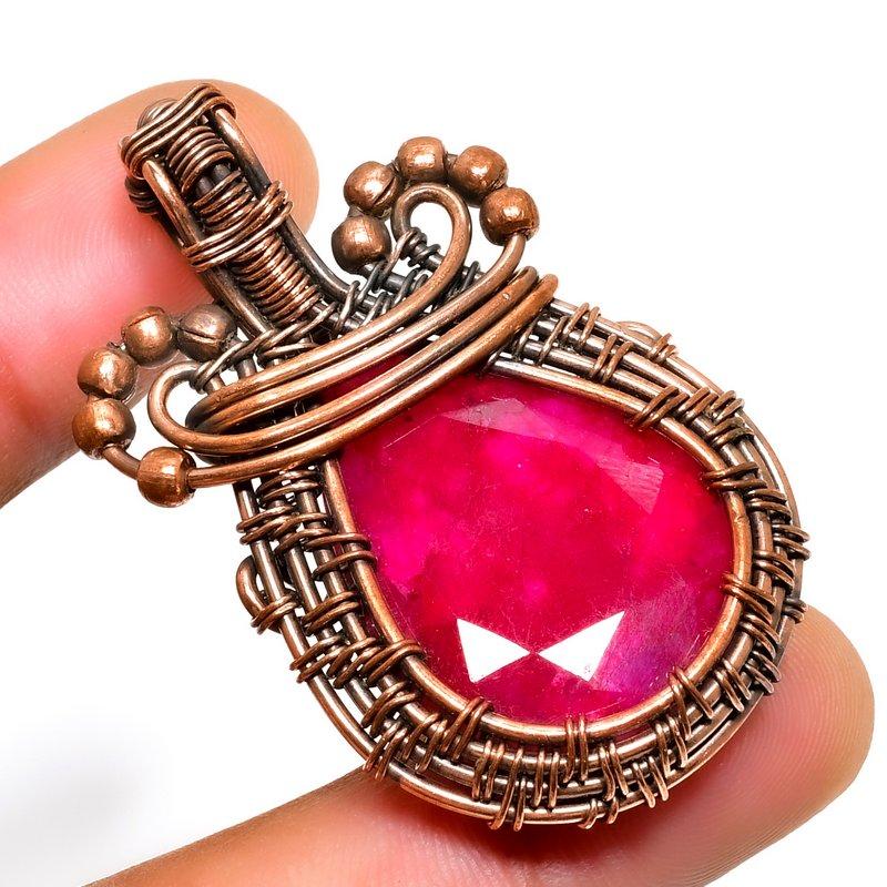 Рубин(Смоделированный) Ювелирный кулон ручной работы с драгоценным камнем 925 пробы, посеребренный, 1,70 дюйма