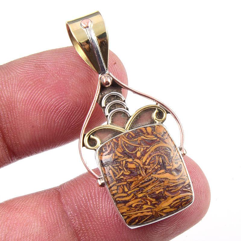 Натуральная яшма Марьям 925 проба Стерлинговое серебро Подарок Двухцветная подвеска 1,50" E7m69