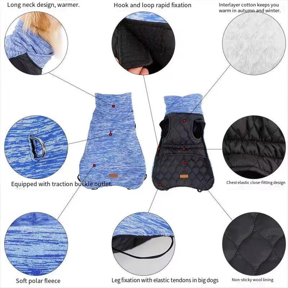 Теплая одежда для собак, утолщенная двусторонняя куртка с подкладкой для домашних животных, хлопковый жилет с длинным воротником