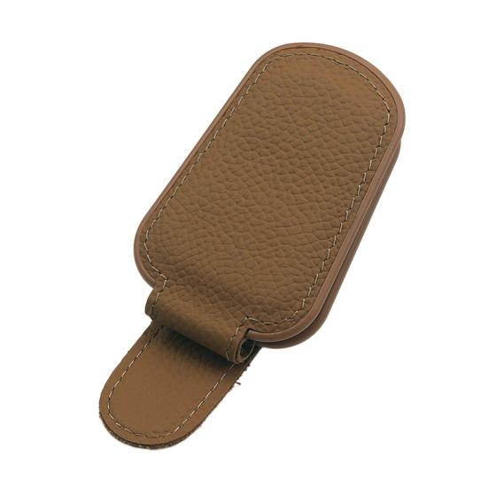 Этот зажим премиум-класса, изготовленный из прочной синтетической смолы и натуральной кожи, предназначен для надежной фиксации солнцезащитных очков или личных вещей, таких как карты, банкноты и купюры.