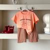 Фиолетовая домашняя одежда, пижамные комплекты для девочек от 3 до 12 лет, винтажная летняя пижама в клетку для мальчиков, хлопковые топы с короткими рукавами + брюки, одежда