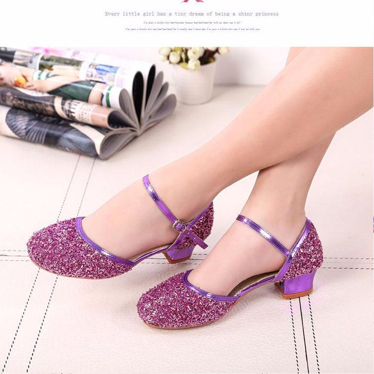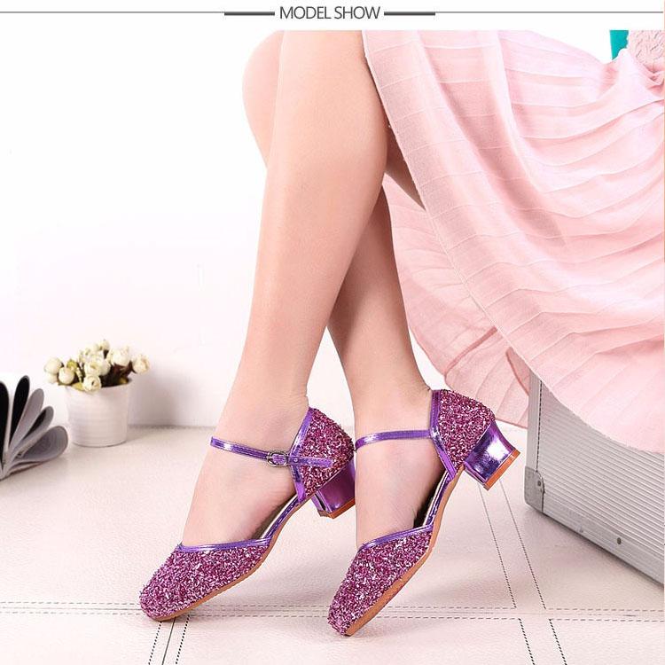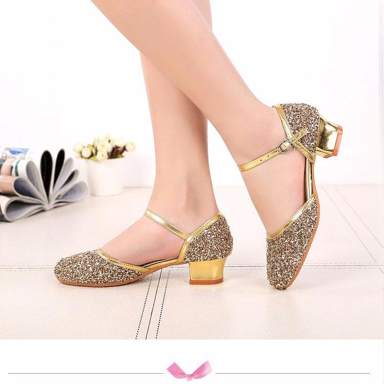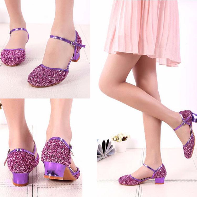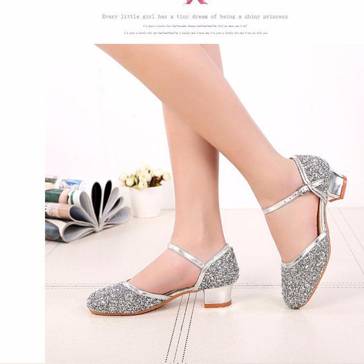 Туфли для латиноамериканских танцев с пайетками для девочек, детские туфли для сальсы, танго, бальных танцев, туфли принцессы на низком каблуке