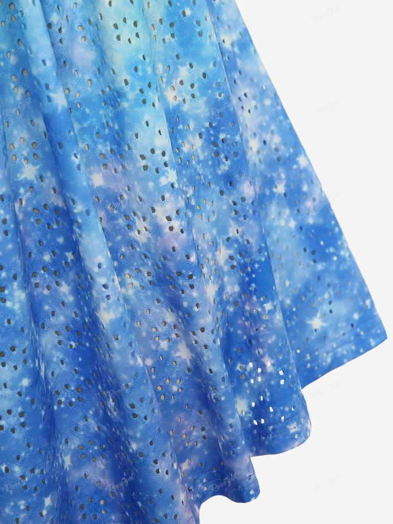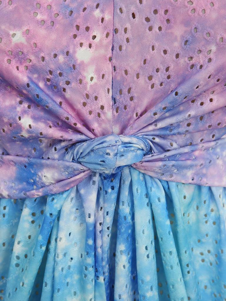 Rosegal Плюс Размер Галактика Омбре С принтом Поворотная пряжка и оборками Полая майка на бретелях
