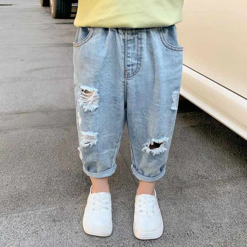 Тонкие брюки с защитой от комаров для мальчиков и девочек, брюки-фонарики, леггинсы, джинсы, однотонные капри с отверстиями, повседневные брюки