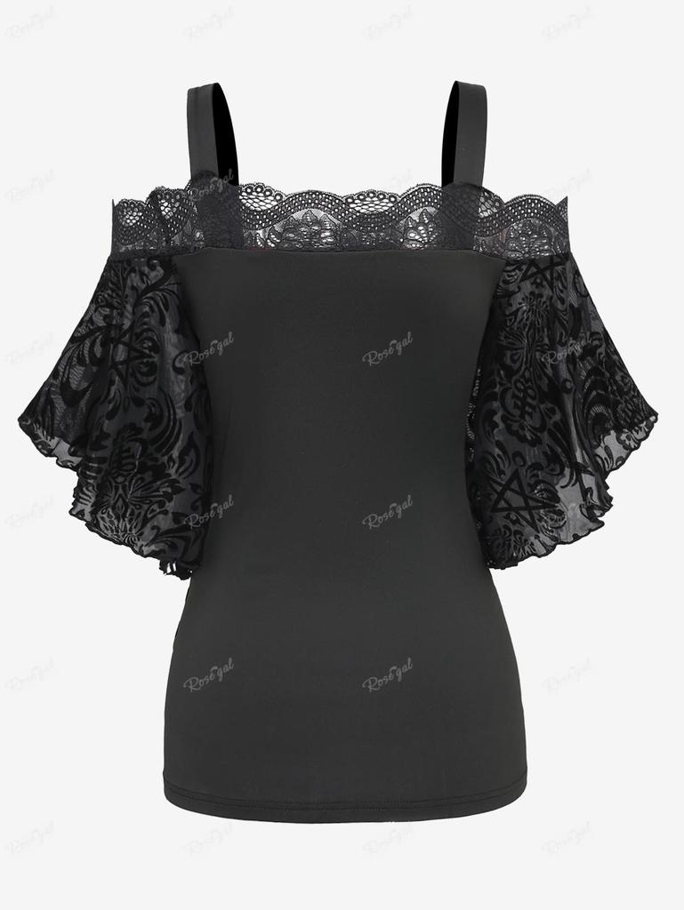 Готический топ Rosegal с рукавами-бабочками и цветочной пентаграммой, сетчатый топ на шнуровке и вставками