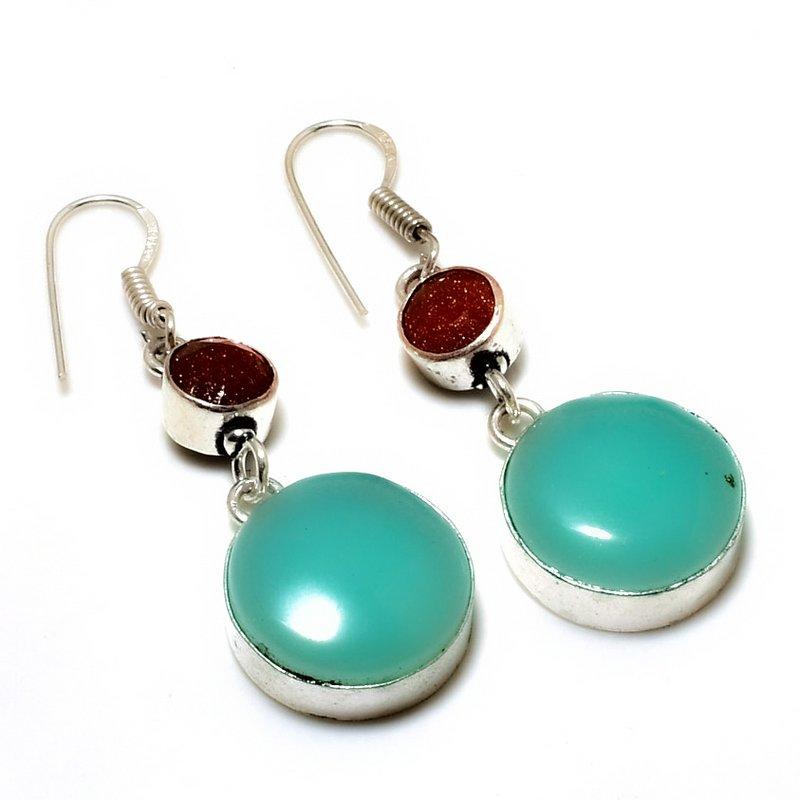 Серьги с зеленым халцедоном и красным солнечным камнем, посеребренные 925 пробы, 1,89 дюйма