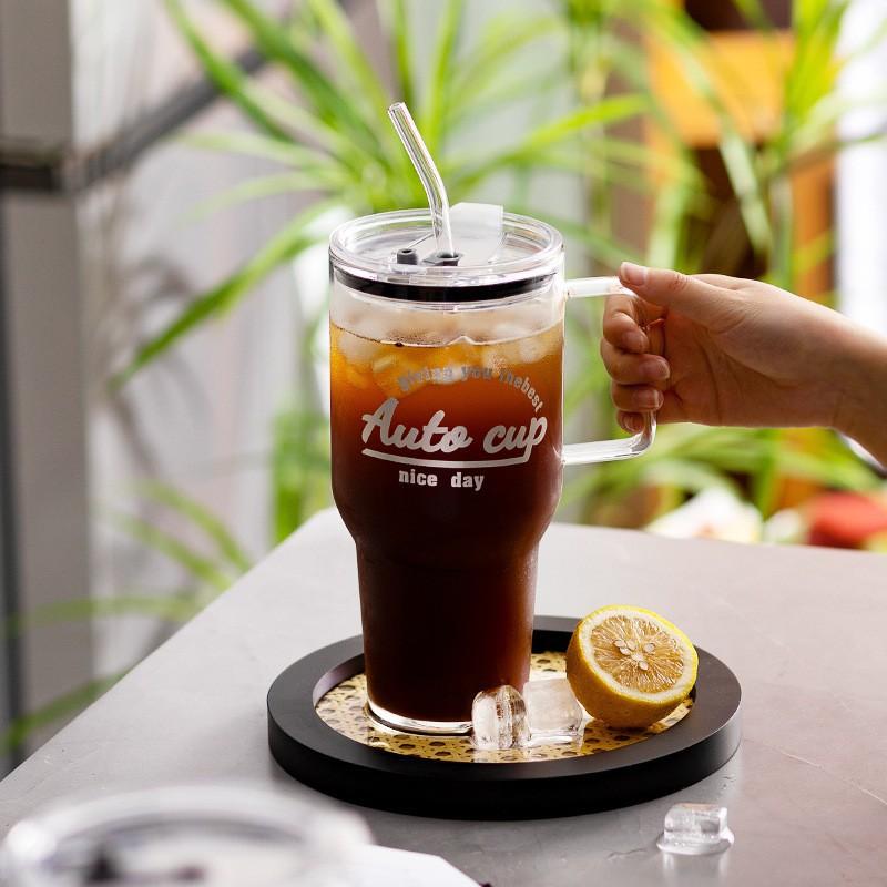 1200 мл прозрачная стеклянная кружка с крышкой и соломинкой пивной бокал чашка для кофе со льдом для домашнего бара кружка для сока молока чая чашки для воды посуда для напитков