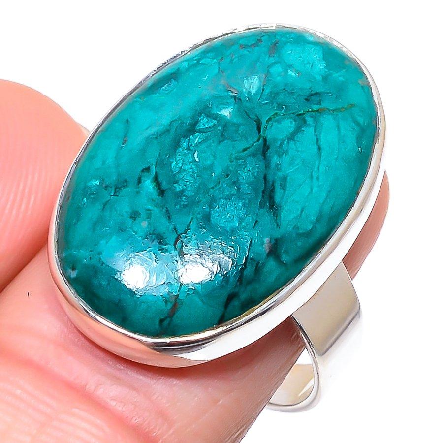 Кольцо из чистого серебра 925 пробы с натуральным драгоценным камнем хризоколлой S.9.5 Q4v29