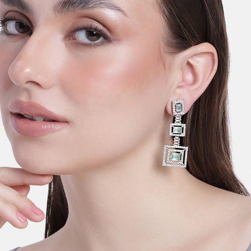 Дизайнерские серьги-подвески Estele с родиевым покрытием и CZ, геометрическим узором и мятно-зеленым для женщин