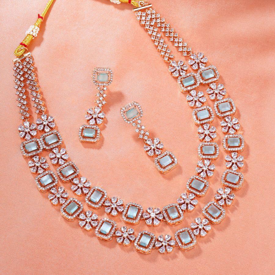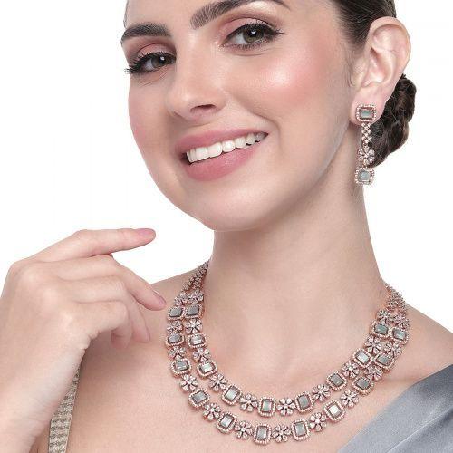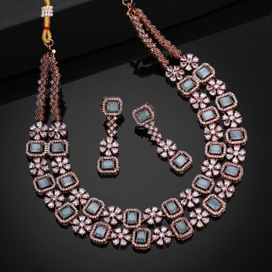 Если вы любите украшения, то этот набор - то, что вам нужно. Это очаровательное колье украшено сверкающими фианитами с цветочным узором, который придает ему сказочный вид. Вы можете сочетать этот набор со всеми вашими свадебными или праздничными нарядами и выглядеть сногсшибательно.