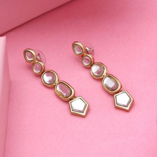 Эти золотые серьги-кундан смотрятся просто потрясающе. Эти элегантные серьги-кундан - потрясающее украшение для праздничного сезона. Дополните их великолепным комплектом лехенга или сари, которые идеально подойдут для свадебных торжеств.