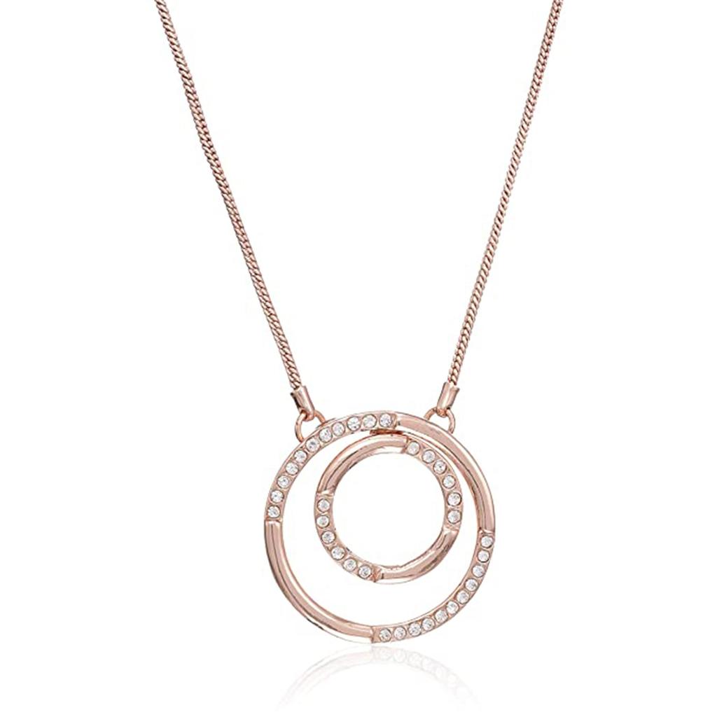 Вы всегда будете в центре внимания на любом мероприятии, надев эту женскую подвеску с кристаллами в форме двойного круга, покрытую розовым золотом. Сочетайте ее с черным платьем и каблуками, чтобы выглядеть потрясающе.