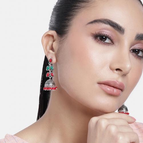 Украсьте этот праздничный сезон этими серьгами с красивым дизайном. Эти серьги с оксидированным покрытием и цветочным узором идеально дополнят ваш традиционный наряд. В этих серьгах вы будете выглядеть как настоящая дива, демонстрируя изящество и элегантность.