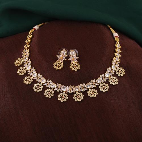 Очаровательный дизайнерский комплект ожерелья с цветочным принтом Estele с позолотой и цирконами для женщин
