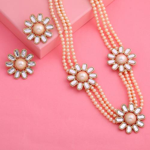 Украсьте себя этим роскошным набором украшений с жемчугом от Kundan. Красивый дизайн с жемчугом выглядит просто великолепно и просто сногсшибательно. Дополните свой ансамбль элегантным платьем-клеш и парой туфель на высоком каблуке.