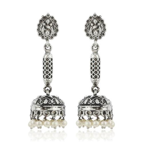 Вы будете выглядеть красиво и элегантно в этих изящных длинных серьгах jhumka с жемчужными каплями. Они отлично подойдут к этническим или западным нарядам.